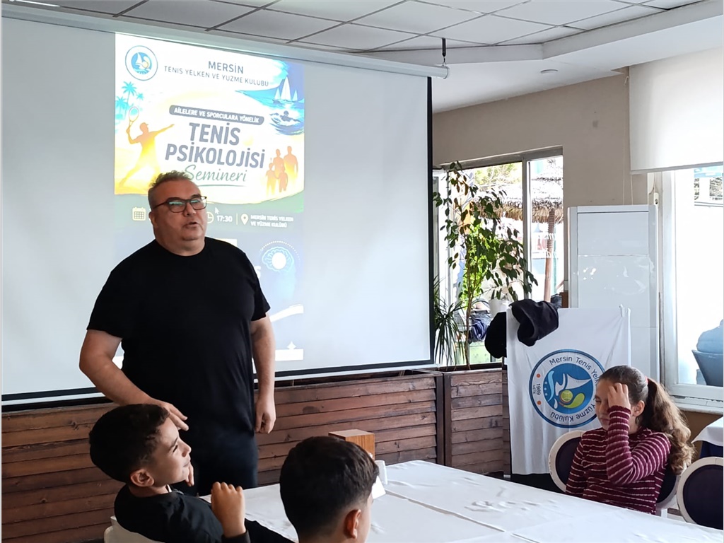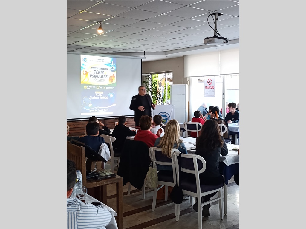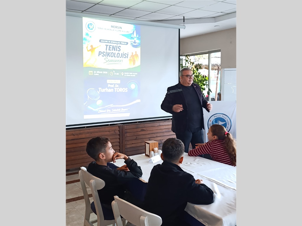 24 NİSAN 2026 CUMA GÜNÜ SAAT 17:30 DA KULÜBÜMÜZDE ORGANİZE EDİLEN "TENİS PSİKOLOJİSİ" ÜZERİNE SEMİNERDE PROF.DR.TURHAN TOROS ALTYAPI SPORCULARIMIZA, VELİLERİMİZE VE ÜYELERİMİZE KIYMETLİ BİLGİLER AKTARMIŞTIR.
