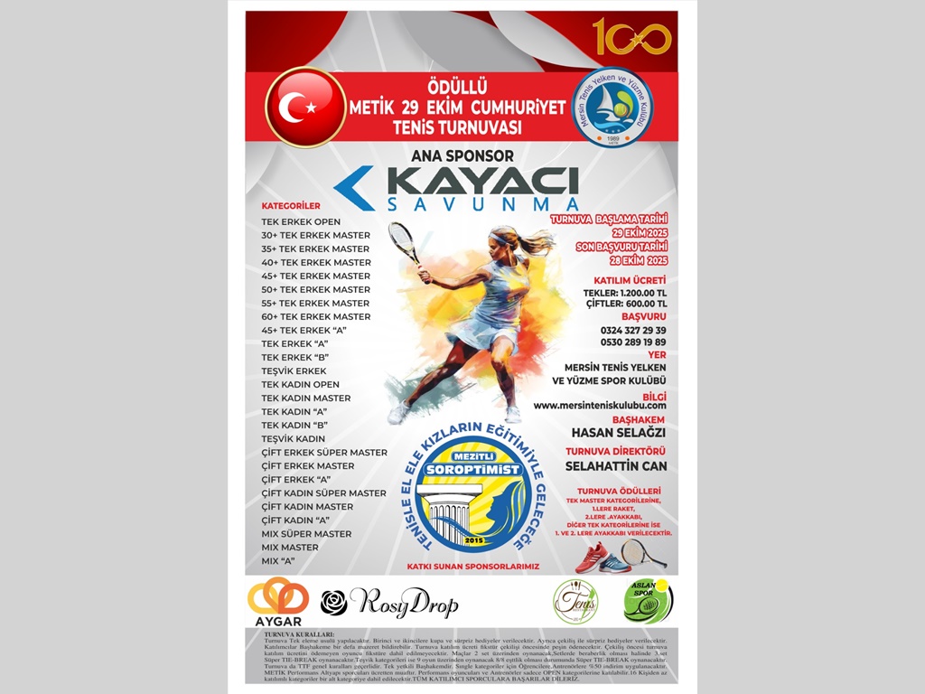 ÖDÜLLÜ METİK 29 EKİM CUMHURİYET TENİS TURNUVASI BAŞLIYOR.