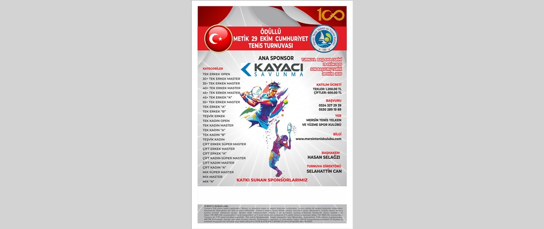 ÖDÜLLÜ METİK 29 EKİM CUMHURİYET TENİS TURNUVASI BAŞLIYOR.