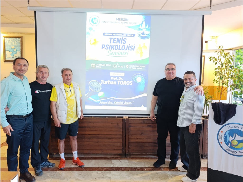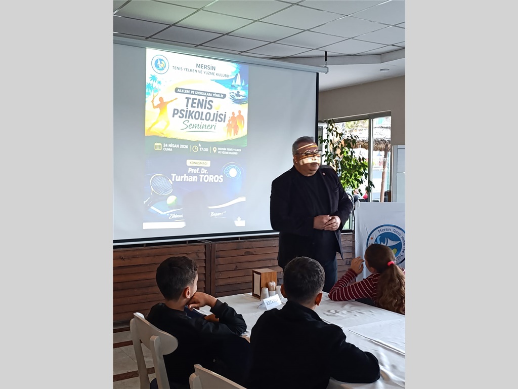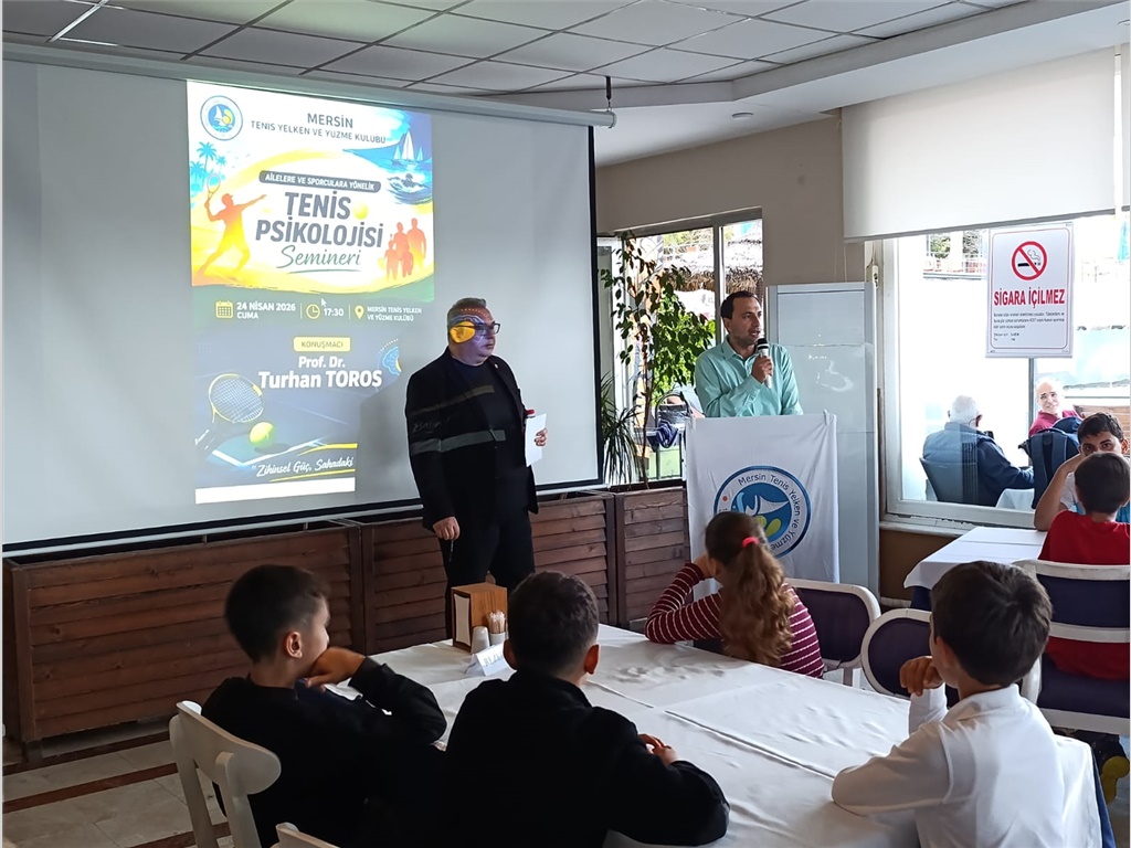 24 NİSAN 2026 CUMA GÜNÜ SAAT 17:30 DA KULÜBÜMÜZDE ORGANİZE EDİLEN "TENİS PSİKOLOJİSİ" ÜZERİNE SEMİNERDE PROF.DR.TURHAN TOROS ALTYAPI SPORCULARIMIZA, VELİLERİMİZE VE ÜYELERİMİZE KIYMETLİ BİLGİLER AKTARMIŞTIR.