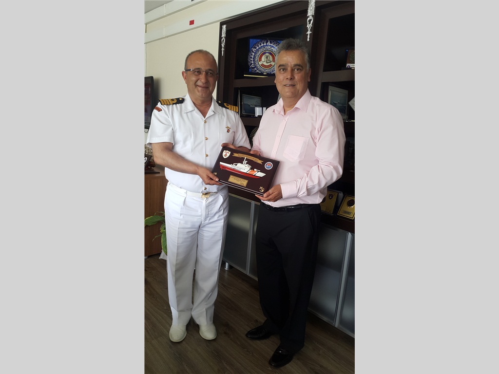 KULUP BAŞKANIMIZ BİROL GELBUL KULUBÜMÜZÜ TEMSİLEN MERSİN SAHİL GÜVENLİK AKDENİZ BÖLGE KOMUTANI SG KIDEMLİ ALBAY FATİH ERHAN’I MAKAMINDA ZİYARET ETTİ.