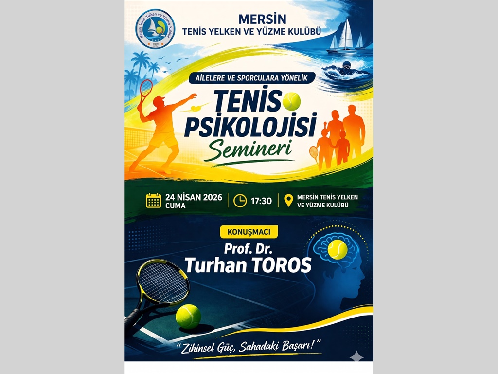 DEĞERLİ TENİSEVERLER; KULÜBÜMÜZ TESİSLERİNDE ORGANİZE EDİLEN, PROF.DR.TURHAN TOROS'UN "TENİS PSİKOLOJİSİ" SEMİNERİNE DAVETLİSİNİZ.